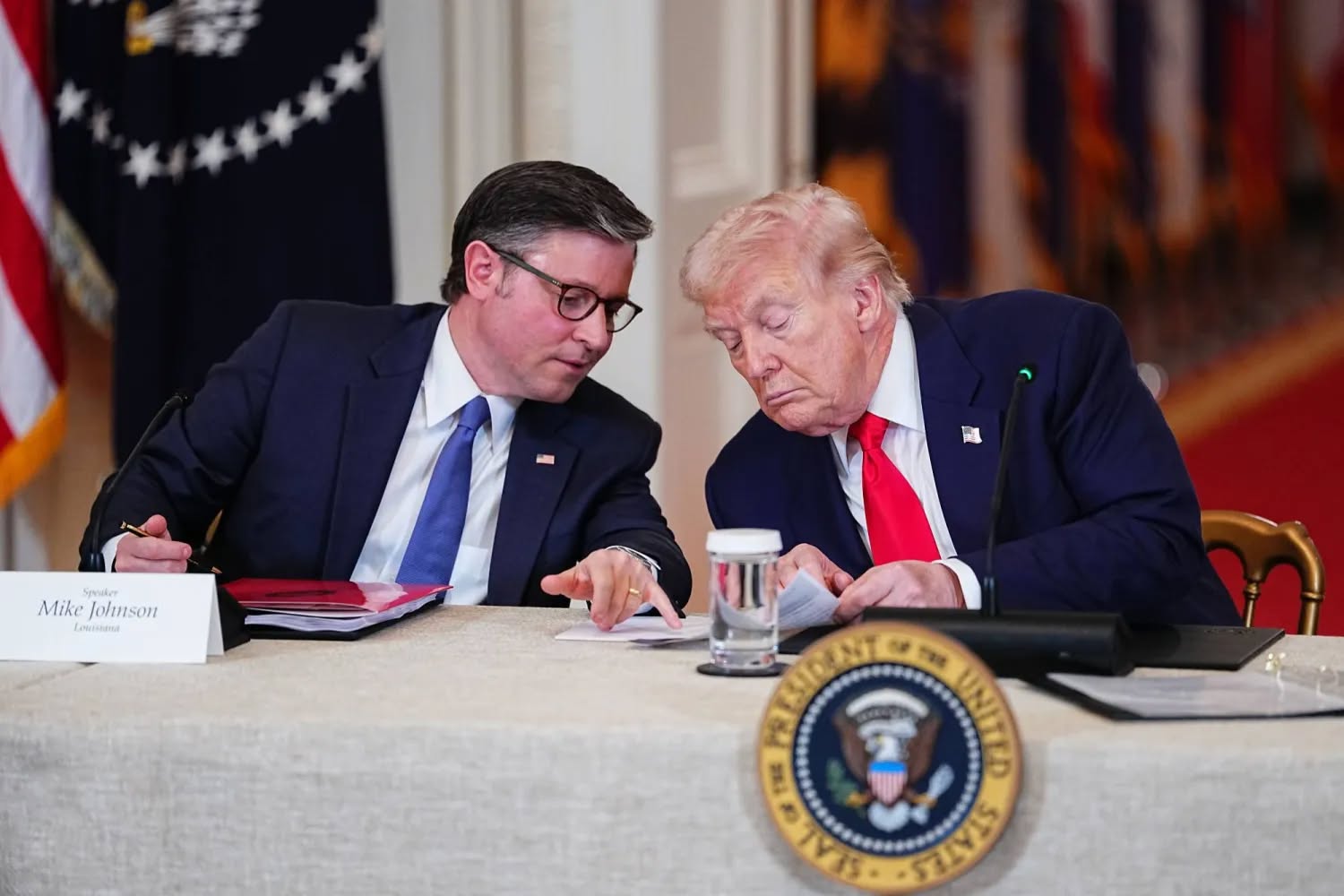 الرئيس الأميركي دونالد ترمب مع رئيس مجلس النواب مايك جونسون في البيت الأبيض 6 مارس 2026 (إ.ب.أ)