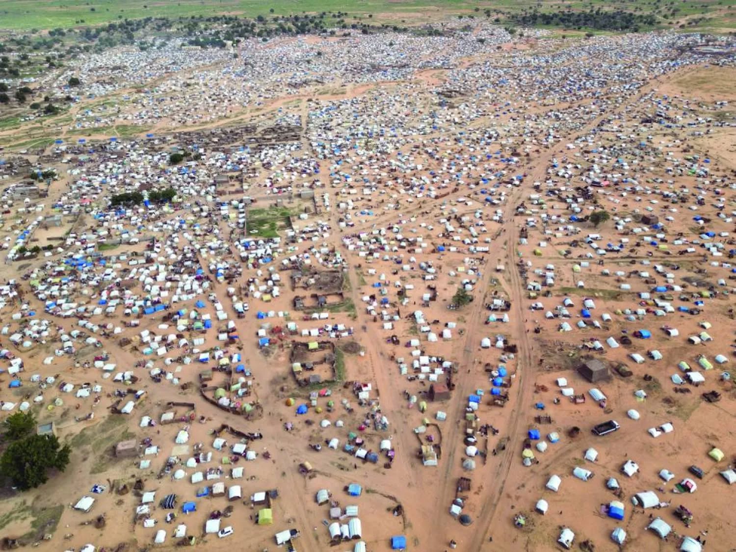 صورة جوية لملاجئ مؤقتة بأدري في تشاد للسودانيين الذين فرّوا من الصراع بدارفور (رويترز)
