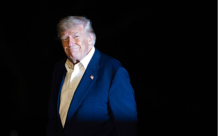 ترمب يبتسم بعد وصوله على متن طائرة مارين وان في الحديقة الجنوبية للبيت الأبيض بواشنطن العاصمة، 16 مايو 2025 (أ ف ب)