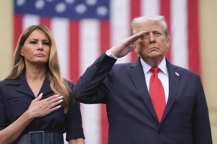 الرئيس الأميركي دونالد ترمب وعقيلته أثناء مشاركتهما في احتفال ذكرى 11 سبتمبر (أ.ب)