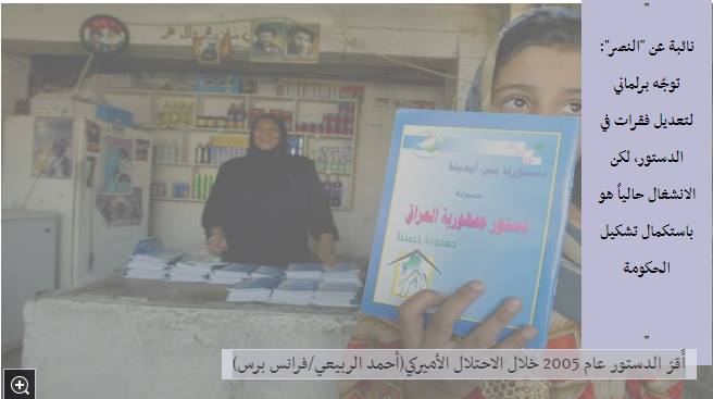 وكُتب الدستور العراقي، في فترة احتلال القوات الأميركية للعراق، وتم التصويت عليه في استفتاء في أكتوبر/ تشرين الأول 2005، ودخل حيّز التطبيق عام 2006. ومن أبرز الشروط التي وُضعت ضمن الدستور لتعديله أن تحصل الاقتراحات على الأغلبية المطلقة لأعضاء البرلمان، وأن تُعرض على استفتاء شعبي، وتحصل على أغلبية المصوتين، فضلاً عن ألا تُرفض من قبل ثلثي المصوتين في ثلاث محافظات أو أكثر.