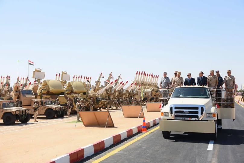الرئيس المصري عبد الفتاح السيسي يشهد اصطفاف تفتيش حرب الفرقة السادسة المدرعة بالجيش الثاني الميداني العام الماضي (أرشيفية – الرئاسة المصرية)