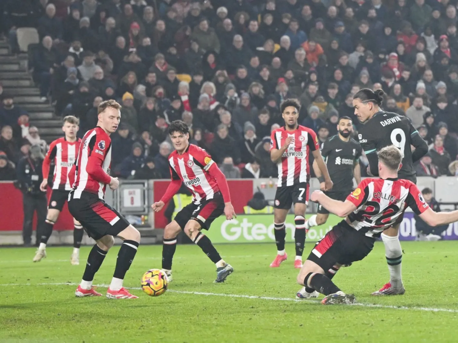 أصبح فريق نيوكاسل مهدداً بفقدان المركز الرابع بجدول الترتيب إثر تلقيه أول خسارة بعد 6 انتصارات متتالية سجل داروين نونيز مهاجم ليفربول هدفين في توقيت قاتل، ليمنح فريقه ليفربول فوزاً ثميناً على مضيفه برنتفورد بنتيجة 2 – صفر، ضمن منافسات الجولة 22 من الدوري الإنجليزي لكرة القدم، السبت. وسجل نونيز هدفي ليفربول في الدقيقتين 91 و93 ليمنح فريقه 3 نقاط ثمينة، ويضع حداً لنزيف النقاط بعد التعادل في الجولتين الماضيتين أمام نوتنغهام فورست بنتيجة 1 – 1، ومانشستر يونايتد بنتيجة 2 – 2. ورفع ليفربول رصيده بهذا الفوز إلى 50 نقطة في الصدارة من 21 مباراة، وله مباراة مؤجلة أمام إيفرتون في ديربي ميرسيسايد ستقام في 12 فبراير (شباط) المقبل، أما برنتفورد فتجمد رصيده عند 28 نقطة من 22 مباراة، ليتراجع للمركز الحادي عشر في جدول الترتيب.