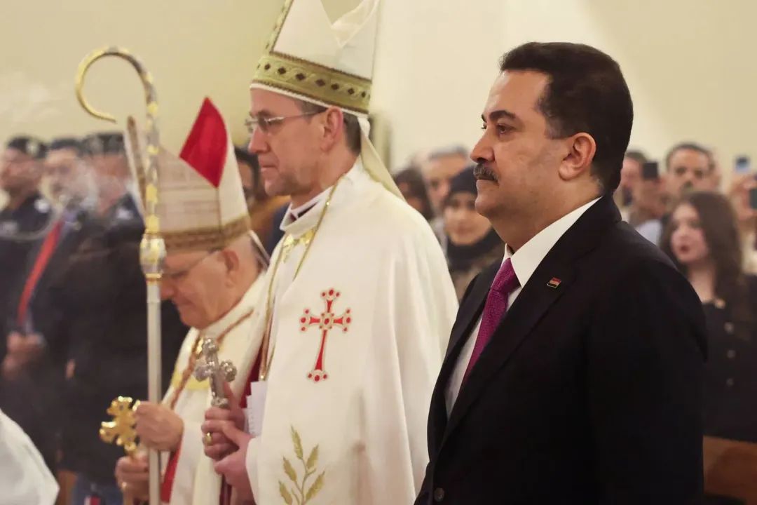 رئيس الوزراء العراقي محمد شياع السوداني خلال قداس عيد الميلاد بكنيسة