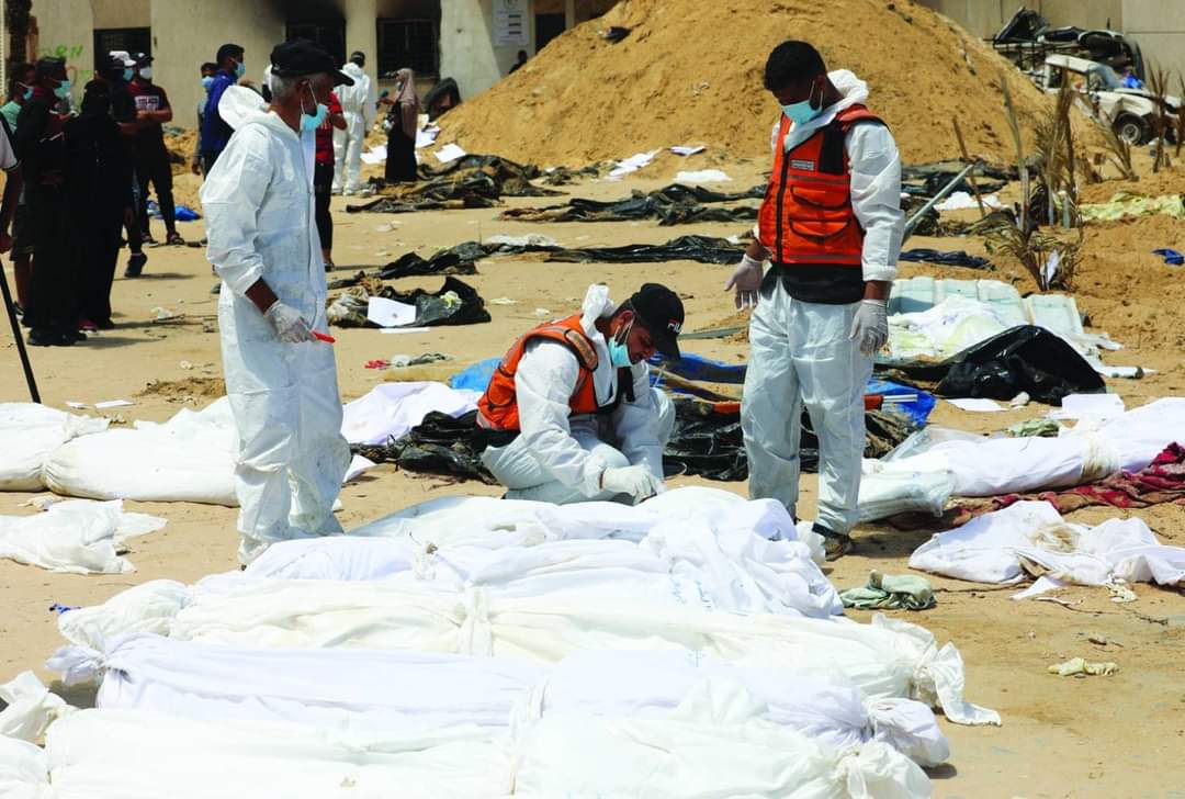 وحتى مساء أمس (الأحد)، أفادت وكالة الأنباء الفلسطينية «وفا»، باستخراج «جثامين 190 شهيداً من مقبرة جماعية بمجمع ناصر الطبي بعد انسحاب الاحتلال من خان يونس». وحسب الدفاع المدني الفلسطيني، فقد عُثر على الجثث «منزوعة الملابس» و«قد تحلل» معظمها في باحة المجمع الطبي.