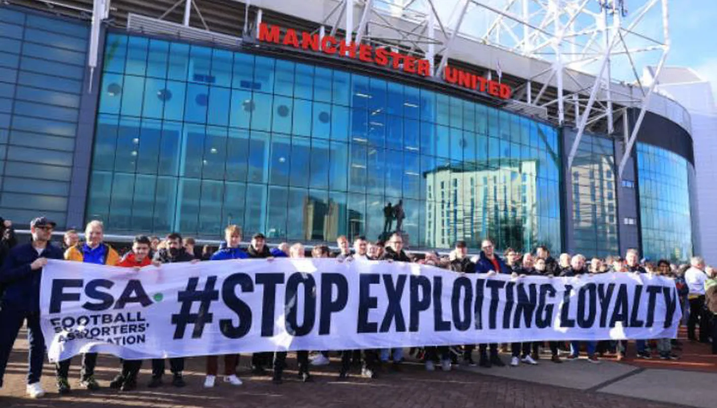 الاحتجاج الذي قادته “رابطة مشجعي كرة القدم” تحت شعار “أوقفوا الاستغلال”، استنكر القرار الذي اتخذته إدارة النادي بقيادة السير جيم راتكليف، مالك شركة INEOS الذي استحوذ على 27.7% من النادي هذا العام.