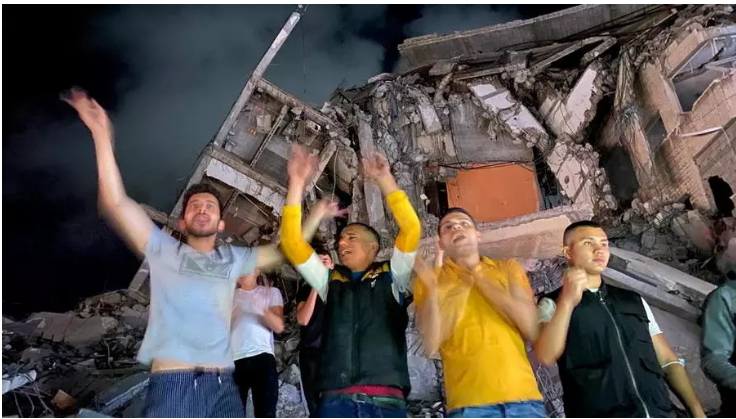 وفي خطاب أمام المحتفلين الذين احتشدوا رافعين رايات حماس ومرددين هتافات مؤيدة للحركة، قال القيادي الكبير في حماس خليل الحية إن “هذه نشوة النصر”. وأضاف: “نقول لأهلنا الذين دُمّرت بيوتهم والذين شُردوا، سنبني البيوت التي دمرها الاحتلال وسنعيد البسمة”.
