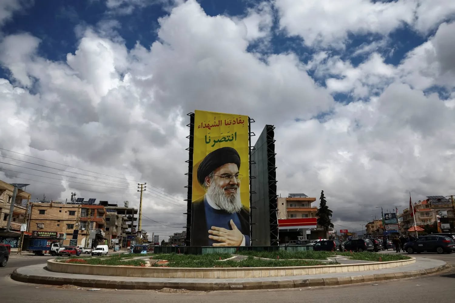 صورة عملاقة لأمين عام «حزب الله» السابق حسن نصر الله في بعلبك (رويترز)