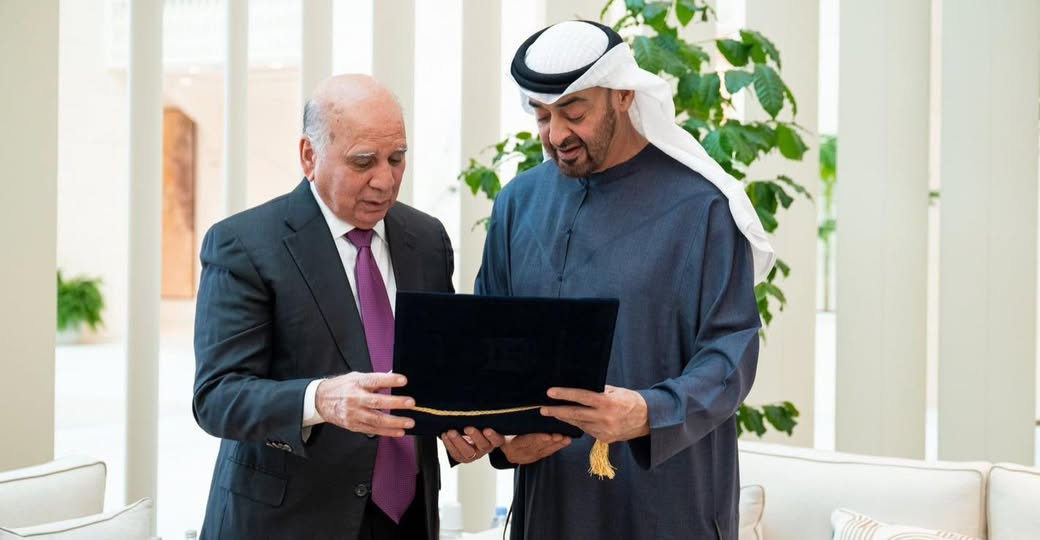 وتابع البيان، أن فؤاد حسين نقل من جانبه تحيات رئيس الجمهورية ورئيس مجلس الوزراء، محمد شياع السوداني، إلى محمد بن زايد، مشيداً بمتانة العلاقات الأخوية التي تجمع البلدين، ومؤكداً حرص العراق على تعزيزها وتطويرها في شتى المجالات”.