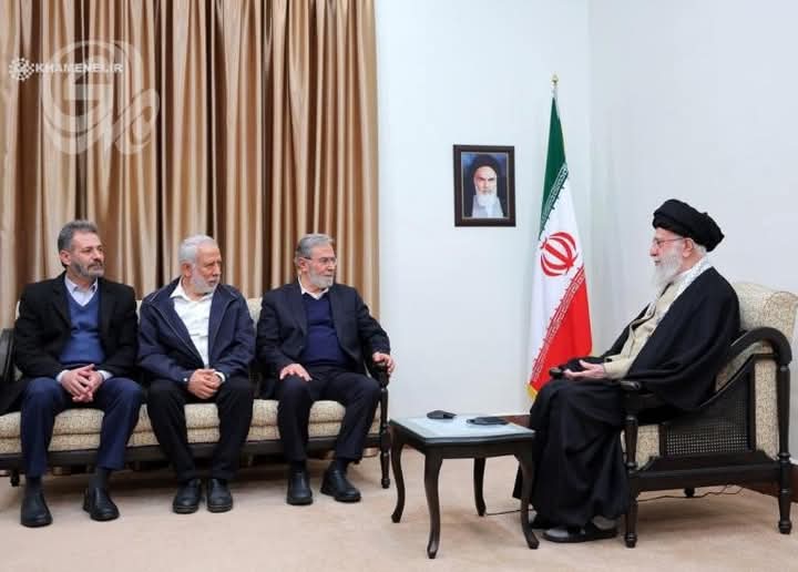 وأشار خامنئي خلال لقائه الأمين العام لحركة الجهاد الإسلامي في فلسطين والوفد المرافق له، بحسب بيان لموقع المرشد الرسمي، إلى أن المشاريع الأمريكية وغيرها بشأن غزة وفلسطين لن تصل إلى أي نتيجة،” مضيفًا أن “من كانوا يتوعدون بالقضاء على المقاومة خلال فترة قصيرة قبل عام ونصف، يجدون أنفسهم اليوم مضطرين للتفاوض على إطلاق سراح أسراهم من قبل مجموعات صغيرة من المقاتلين، مقابل الإفراج عن أعداد كبيرة من الأسرى الفلسطينيين”.