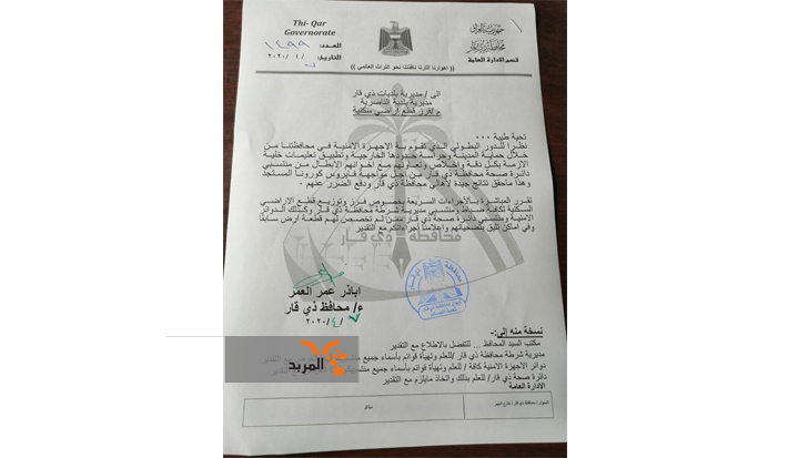 وجه محافظ ذي قار وكالة أباذر العمر ,اليوم الثلاثاء, دائرتي البلديات وبلدية الناصرية المباشرة في الاجراءات السريعة لفرز وتوزيع قطع الاراضي السكنية لجميع منتسبي قيادة شرطة المحافظة والدوائر الامنية الساندة ضباطا ومنتسبين وكذلك منتسبي دائرة الصحة ممن لم تخصص لهم قطع اراضي سكنية سابقا تقديرا للموقف البطولي والتعاون المشترك في مواجهة فيروس كورونا المستجد.