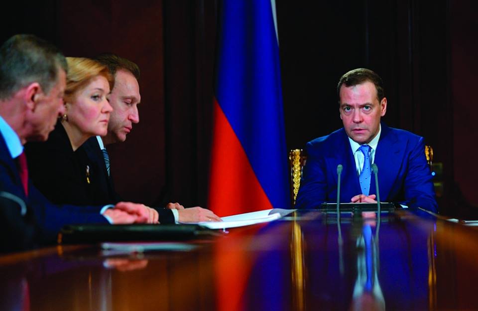 مدفيديف خلال اجتماع للحكومة بحث في تداعيات العقوبات الأميركية (أ ب)