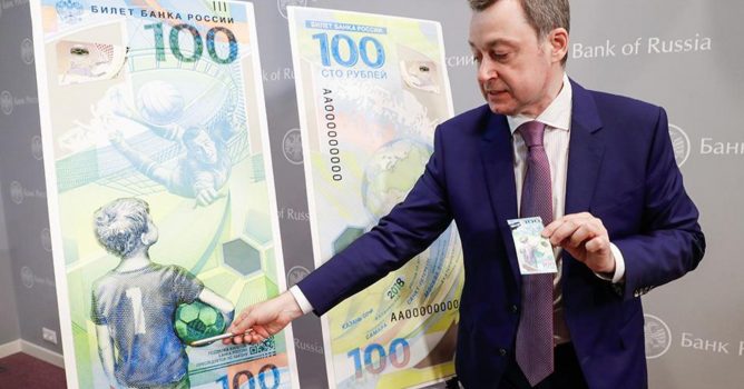 وفي مثال حي لمثل هذا الدعم، بث بنك روسيا المركزي صورة بصفحاته على وسائل التواصل الاجتماعي للعملة المعدنية الفضية اللون من فئة نصف روبل، وقد نقش عليها “فيفا 2018 كأس العالم لكرة القدم في روسيا”.