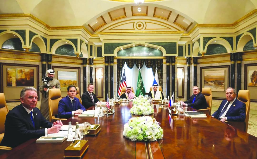 محادثات جدة بين الوفدين الأميركي والروسي في «قصر الدرعية» بالرياض يوم 18 فبراير الماضي (رويترز)