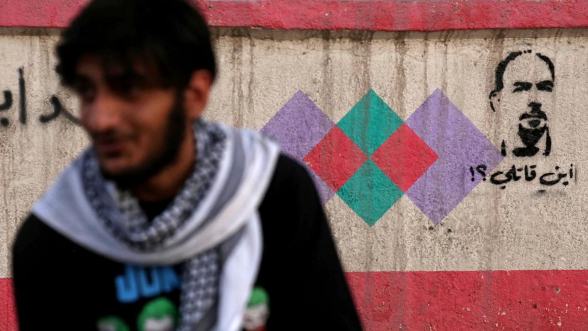 جدارية في كربلاء للناشط المغتال إيهاب الوزني (فرانس برس)+الخط–