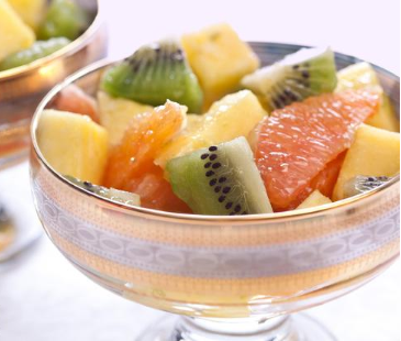 – اخلطي الحمضيات مع الكيوي والموز وصفيها في طبق التقديم.