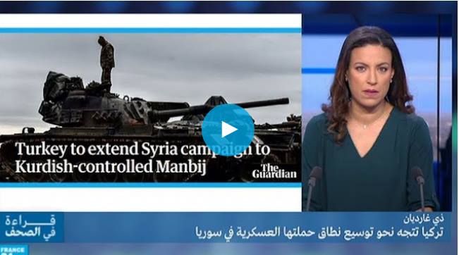 في صحف اليوم: ذي غارديان تنقل سعي أنقرة إلى توسيع نطاق حملتها باتجاه منبج التي يسيطر عليها الأكراد، هناك حيث يخيّم أيضاً شبح مواجهة أمريكية تركية، في وقت تواصل تركيا حملتها على عفرين شمال غرب سوريا، حملة عسكرية تسببت في نزوح نحو خمسة آلاف شخص وقتلت العشرات من المدنيين تقول الصحيفة البريطانية، التي أوردت تصريحات الرئيس الأمريكي دونالد ترامب والتي دعا خلالها الرئيس رجب طيب أردوغان إلى الحد من حملته العسكرية تفادياً للخسائر في صفوف المدنيين ومحذراً في الوقت نفسه من الدخول في مواجهة مع القوات الأمريكية ..إذا كانت واشنطن قد غضت الطرف عن عملية عفرين إلا أنها قد تغير سياستها بتوسع نطاق الحملة التركية باتجاه منبج وإلى غاية الحدود مع العراق حيث توجد قوات سوريا الديمقراطية حليفة واشنطن.