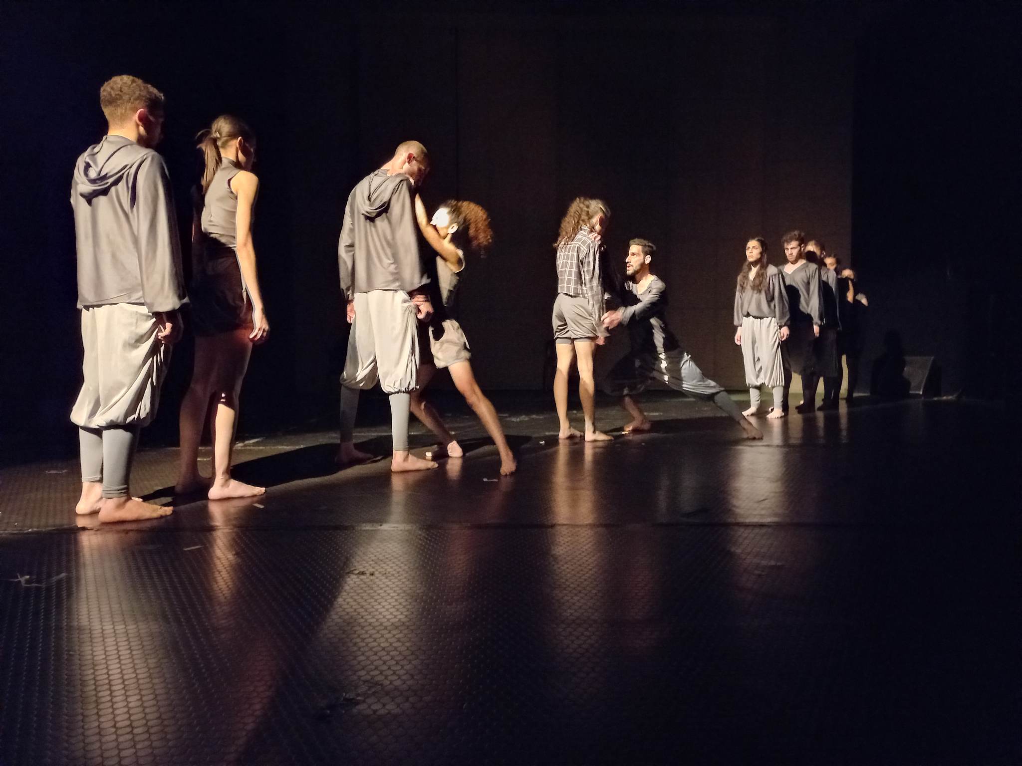 هنا لعبت الإضاءة (أحمد خبي) على مدى 50 دقيقة من زمن العرض دوراً تبادلياً مع أجساد الراقصين، فأظهرت التشكيل الجمالي للكتل المتزاحمة في أنساق دائرية. وتعاملت مع الفضاء كتورية لتقديم لعب مسرحي خلط الرقص بالدراما من دون أن يقع في المباشرة والاستعراض، بل عول مخرج العرض ومصممه على لياقة راقصيه ومهاراتهم الحركية في الانتقال بسلاسة، بين أجواء المأتم والزفاف، ومنها نحو تجسيد ما يشبه ثورة جماعية على العرف والعادات المتوارثة، وكيف تعمل هذه العادات على تغليف البشر ضمن قوالب دينية واجتماعية وسياسية.