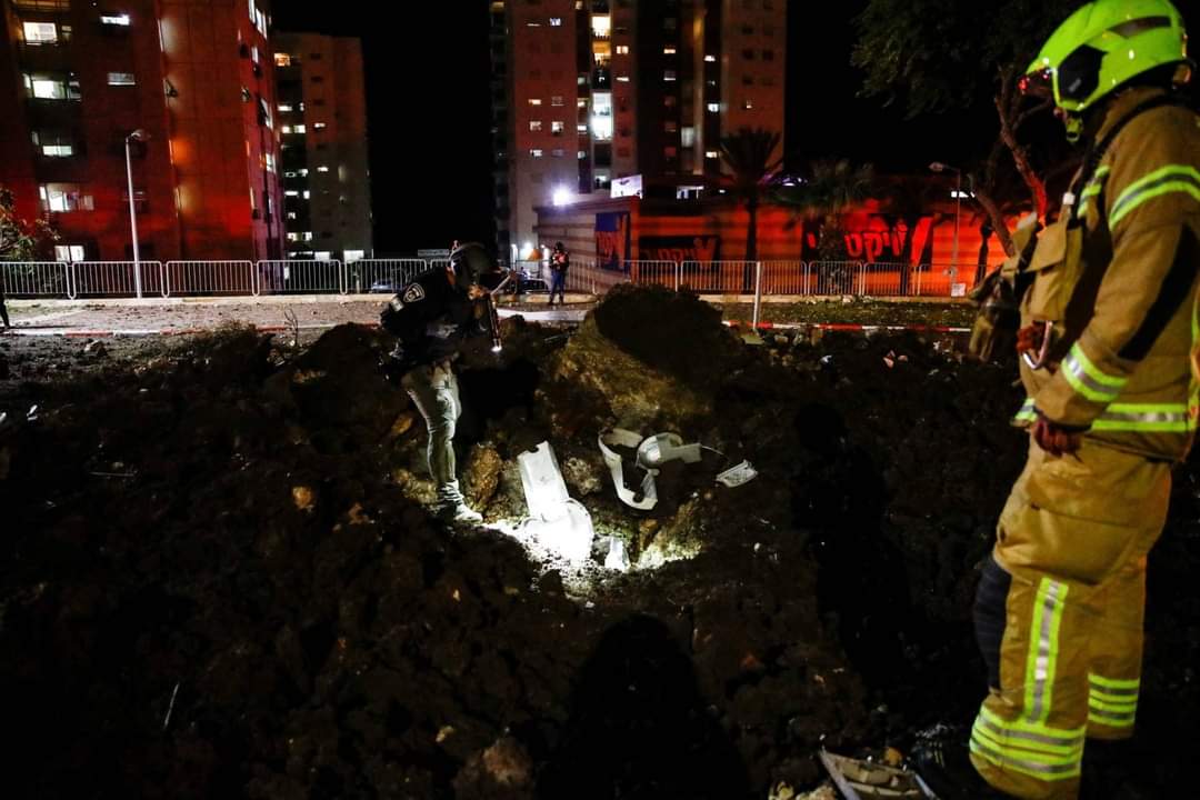 فريق إنقاذ يعاين موقع سقوط صاروخ في حيفا ليل 6 – 7 أكتوبر (رويترز)