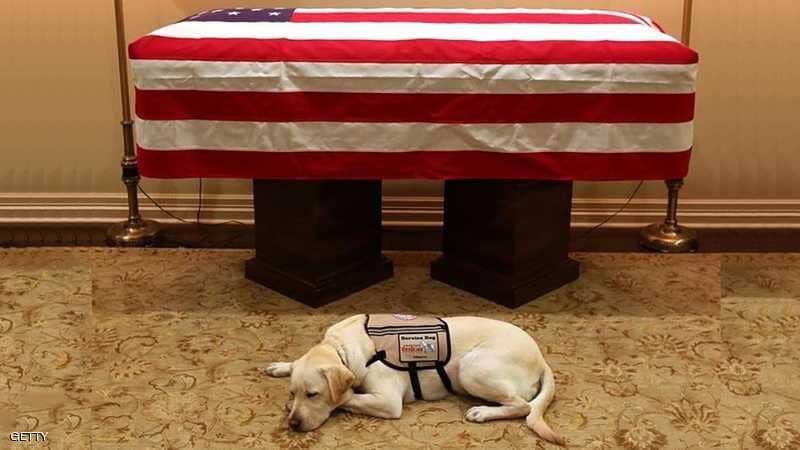 وأظهرت صورة تم تداولها على مواقع التواصل الاجتماعي الكلب وهو مستلق أمام تابوت الرئيس الراحل في منزله بهيوستن، ثم نشرت الصورة على صفحة الرئيس الراحل على إنستغرام، مع عبارة “المهمة اكتملت” .