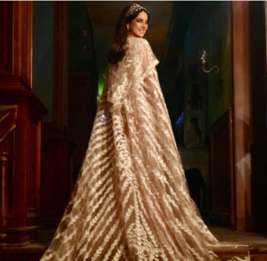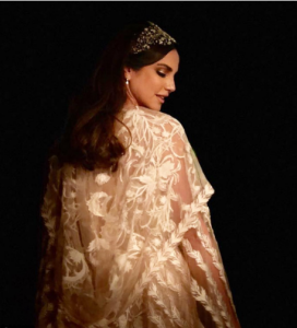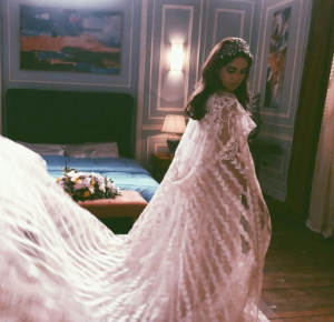 واستطاعت الفنانة درة هي الأخرى أن تجذب الأنظار إلى فستان زفافها في مسلسل “نسر الصعيد”، حيث ارتدت تصميماً للمصمم المصري هاني البحيري جاء على شكل “Cape Dress”.