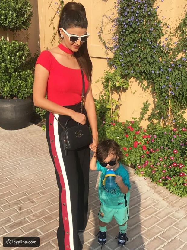 فقد اعتمدت النجمات الثلاث بنطلوناً باللون الأسود مزيناً من الجانبين بشرائط طولية باللونين الأبيض والأحمر وبأزرار معدنية ملفتة، وهو من ماركة Zara، حيث ظهرت به علا الفارس أوائل شهر ديسمبر الماضي، وكانت قد ارتدته مع تيشيرت محدد للجسم باللون الأحمر وبأكمام قصير وياقة علوية كاشفة لمنطقة الصدر.