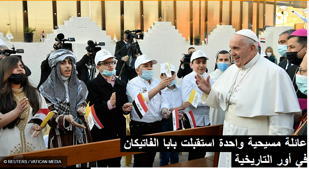 لم يجد بابا الفاتيكان فرنسيس في مدينة أور، التي زارها ضمن الأماكن التي يزروها في العراق، سوى عائلة مسيحية واحدة تستقبله في المدينة.وحسب صحيفة الشرق الأوسط، كانت عائلة ماهر طوبيا البالغ من العمر 53 عاما هي الوحيدة التي استقبلت البابا في المدينة التي يقال إنها مسقط رأس النبي إبراهيم.ماهر طوبيا، قال إن الناصرية كانت تضم في التعسينيات بين 20 إلى 30 عائلة مسيحية، “الآن لا يتبق سواي أنا وشقيقي”.واعتبر طوبيا أن زيارة البابا “أساسا للمحبة والسلام”.واستقل فرنسيس، اليوم الأحد 7 مارس/آذار، عربة غولف بيضاء للتجول ورؤية آثار كنيسة “الحبل بلا دنس” في العراق، التي دمر تنظيم “داعش” الإرهابي (المحظور في روسيا) جزءا منها في الأعوام الماضية.وأقام بابا الفاتيكان فرانسيس قداسا في مدينة الموصل مركز محافظة نينوى شمالي العراق، دعا خلاله إلى السلام ونبذ العنف والكراهية.