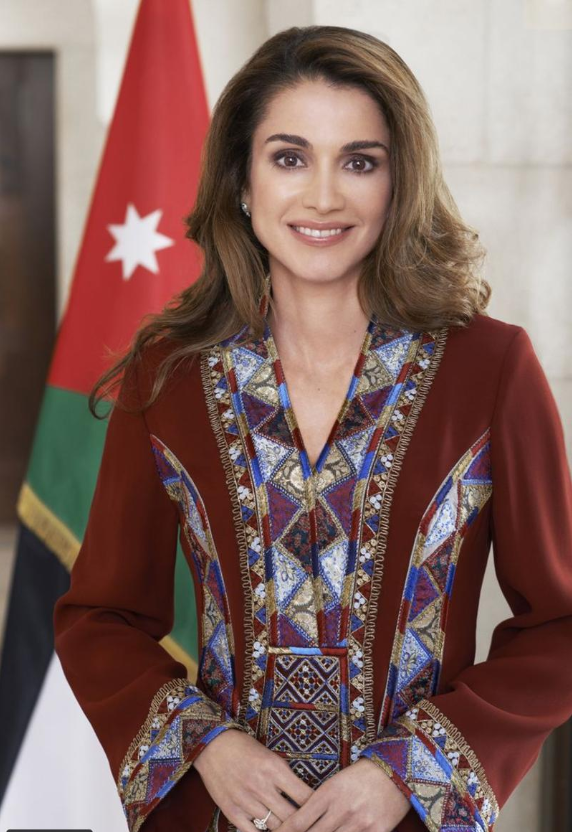 لا تعتمد الملكة رانيا على التطريز الكلاسيكي المألوف باللون الأحمر على أرضية سوداء أو بيضاء فحسب، بل تختار ألوان متجددة كثيراً مثل الفضي والذهبي والأزرق والأخضر وغيرها، وسواءً كان التطريز على عباءات رمضانية أو قطع ملابس من قبيل القطع العلوية أو التنانير.