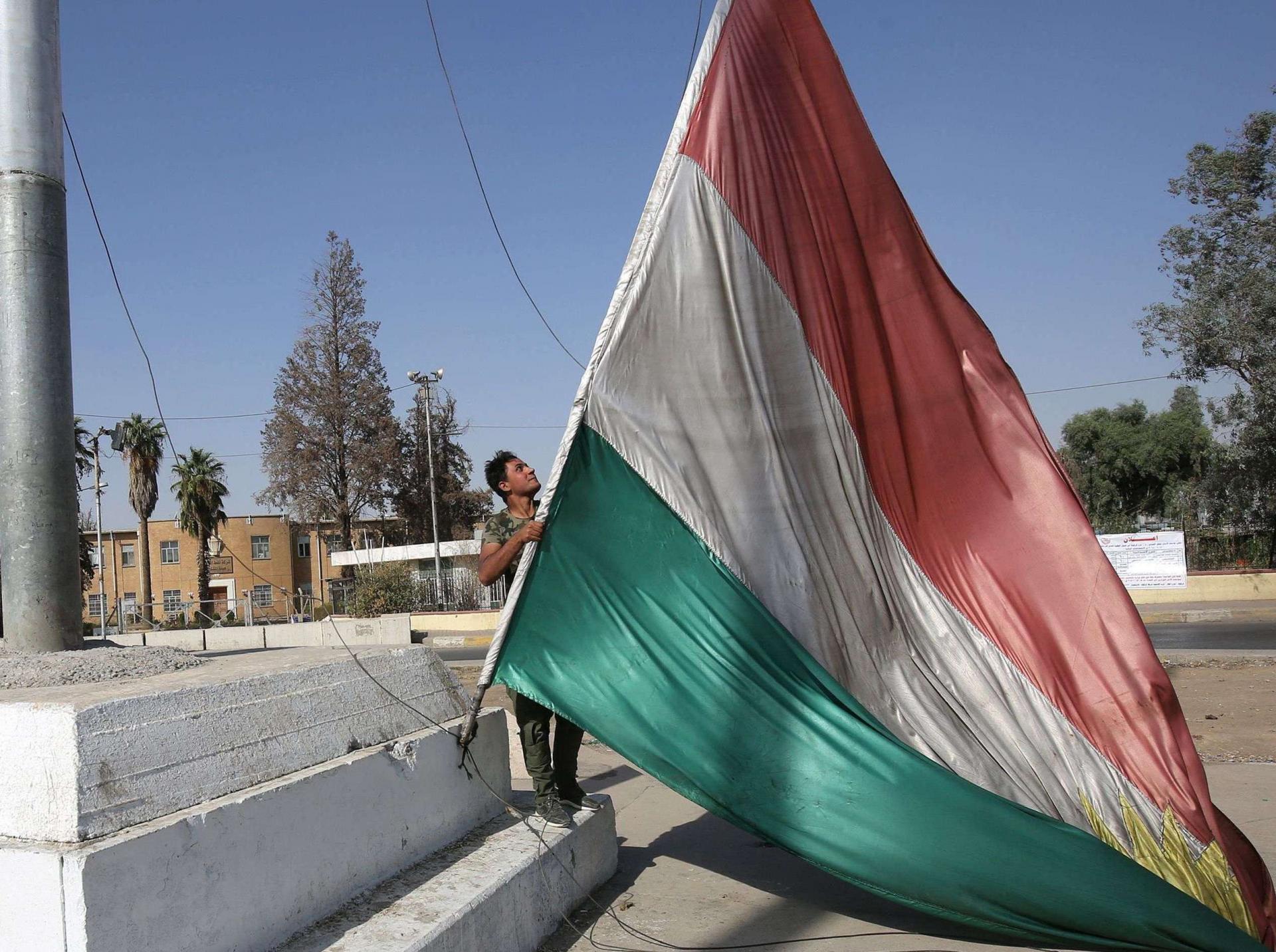 وكانت الحكومة الاتحادية أقدمت على إنزال هذا العلم من المناطق المتنازع عليها على خلفية أحداث 16 أكتوبر/تشرين الأول 2017 عقب استفتاء الاستقلال.
