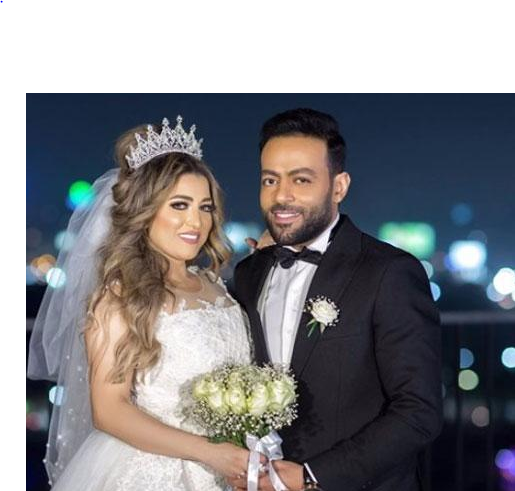 تامر عاشور مع زوجته في عقد قران الفنانة شيماء سيف