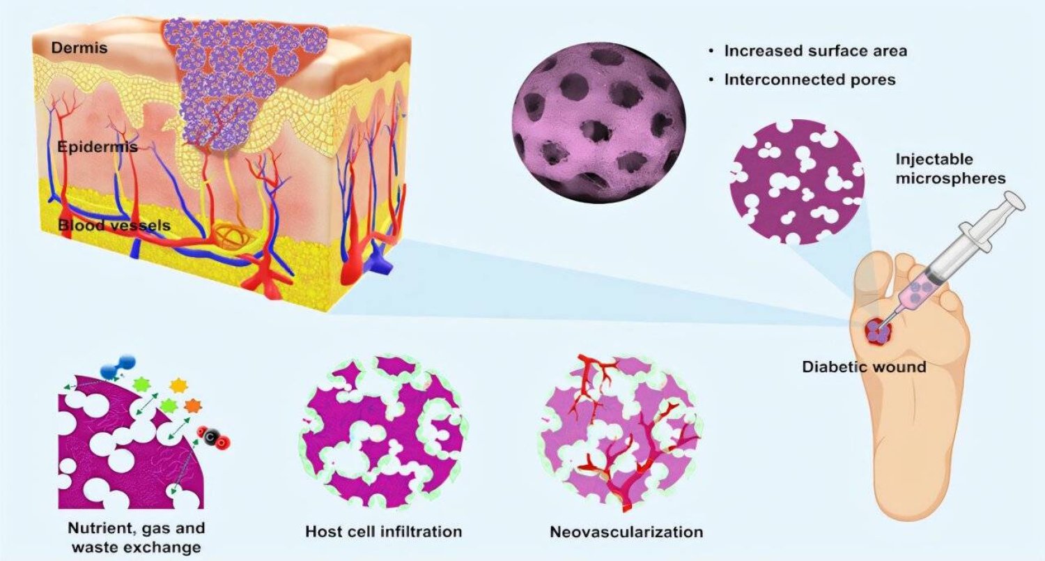توصّل باحثون بمعهد تيراساكي للابتكار الطبي الحيوي في الولايات المتحدة إلى علاج مبتكر لجروح مرضى السكري يعتمد على حشوات حبيبية قابلة للحقن على الجلد.