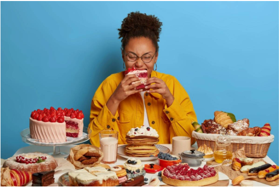 2-تناول المزيد من الحلويات: السكريات والحلويات من أخطر أنواع الإدمان الغذائي، وبالتالي تقول الدكتورة أونوين: “إذا بدأت بتناول قطعة حلوى مع العشاء كل ليلة، فإن قدرتك على التحمّل ستزداد، وسرعان ما ستحتاجين إلى قطعة أخرى أو ثلاثٍ لتشعري بنفس مستوى النشوة. وغالباً ما يكون تناول الشوكولاتة أو الكاتو في الليل للتسلية وليس لإشباع حاجة أو بسبب الجوع، وهذا ما يحول الأمر الى إدمان يحتاج الى علاج سريع”.