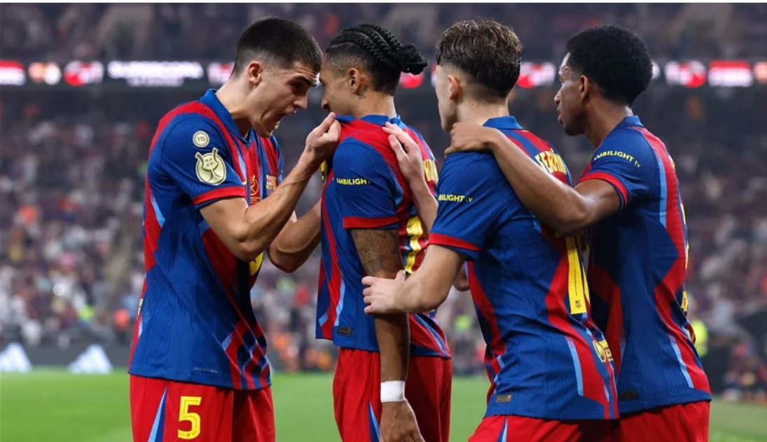 توج نادي برشلونة بلقب كأس السوبر الإسباني، اليوم الأحد، بعد فوزه على غريمه التقليدي ريال مدريد 3-2، ضمن منافسات نهائي كأس السوبر الإسباني، على ملعب الإنماء.