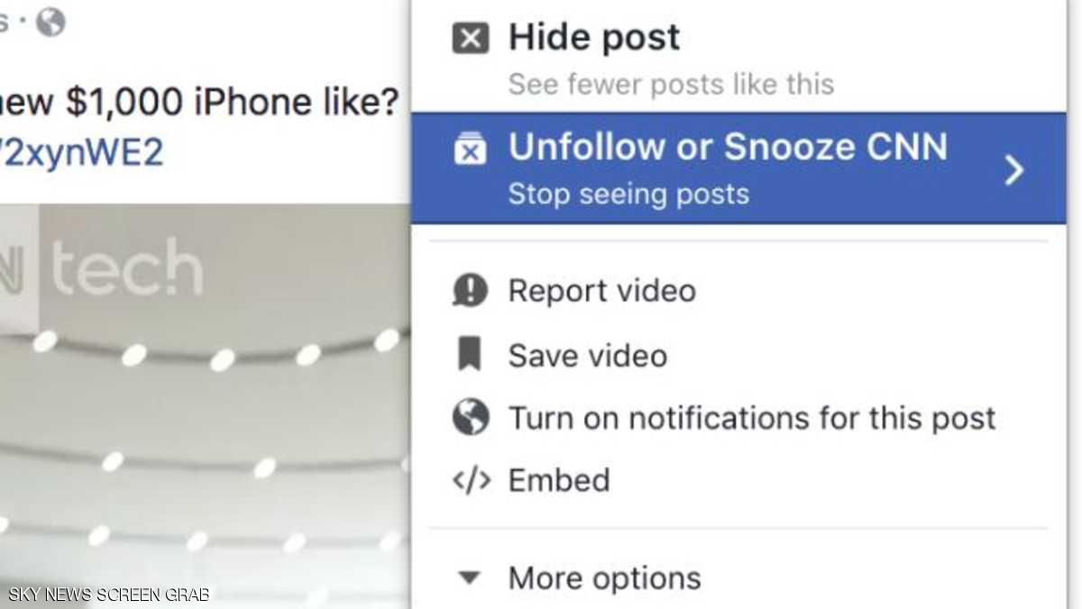 حسب “تك كرانش” التقني، فإن موقع فيسبوك طور زر “الغفوة” Snooze الذي يتيح حظر ظهور المنشورات الصادرة عن صفحة أو شخص أو مجموعة معينة على الموقع لمدة 24 ساعة أو أسبوع أو شهر.