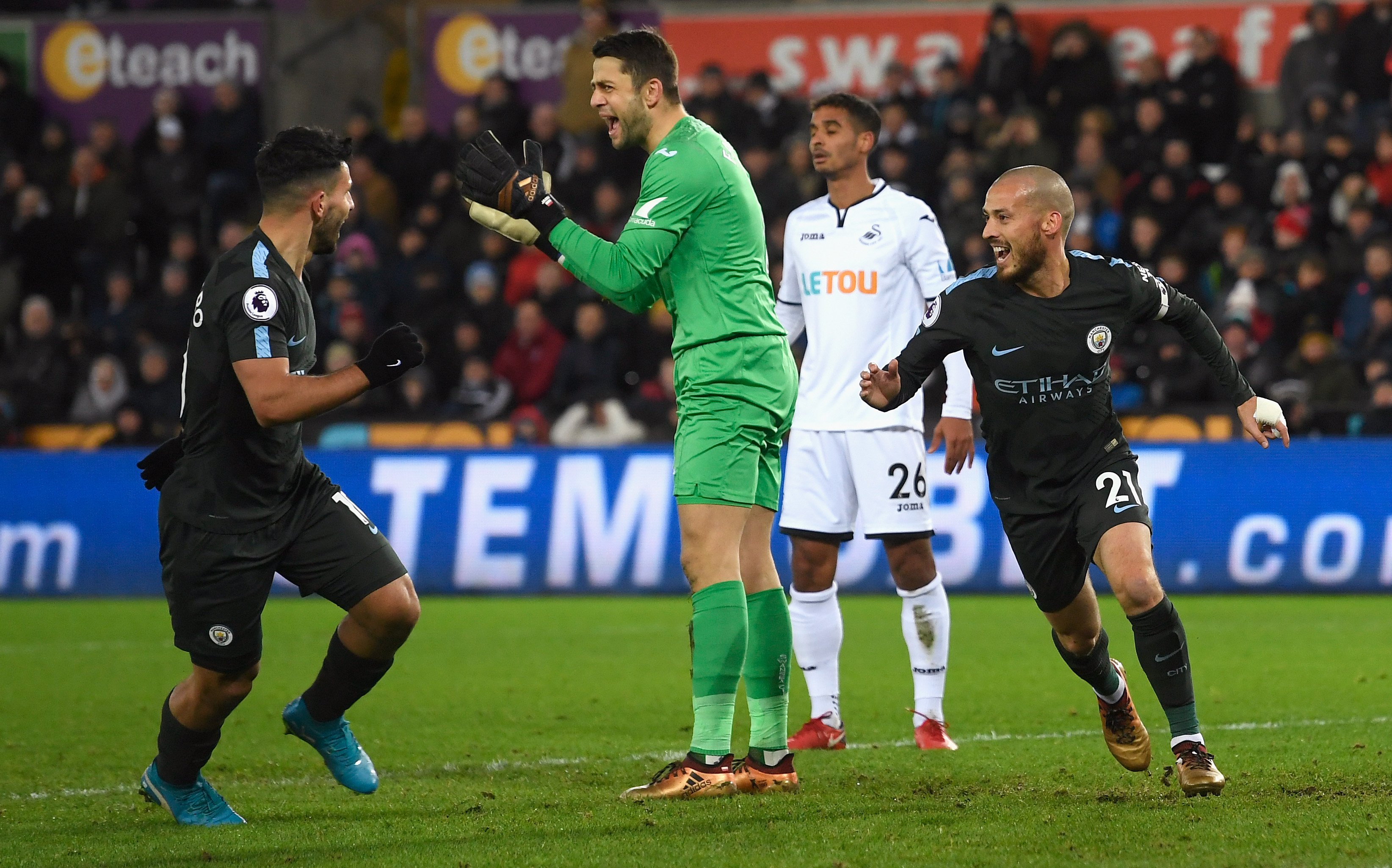 قطار مانشستر سيتي يستمر في دهس الخصوم ويتجاوز سوانزي سيتي برباعية