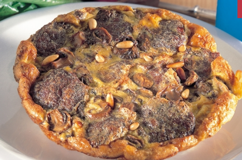 تسخن السمن في طبق مقاوم لحرارة الفرن حتى تصبح ساخنة كثيراً، ثم ترصف فوقها أقراص الكفتة. يوضع الفطر المقلي حول الأقراص، وكذلك الصنوبر المقلي. يصب بعدها مزيج البيض حول الأقراص. يخبز الطبق الزجاجي في فرن حرارته 350 درجة فهرنهايت حتى يستوي البيض وينتفخ.