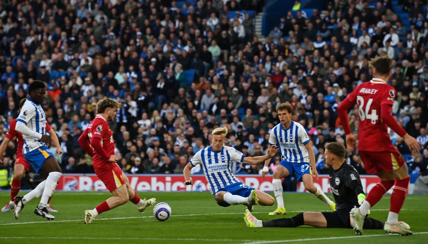 فشل ليفربول في تحقيق فوزه الأول كبطل ومني بهزيمة ثانية في ثالث مباراة له منذ تتويجه بلقبه العشرين، وجاءت على يد مضيفه برايتون 2-3 في لقاء تقدم خلاله مرتين الإثنين في المرحلة السابعة والثلاثين قبل الأخيرة من الدوري الإنكليزي لكرة القدم.