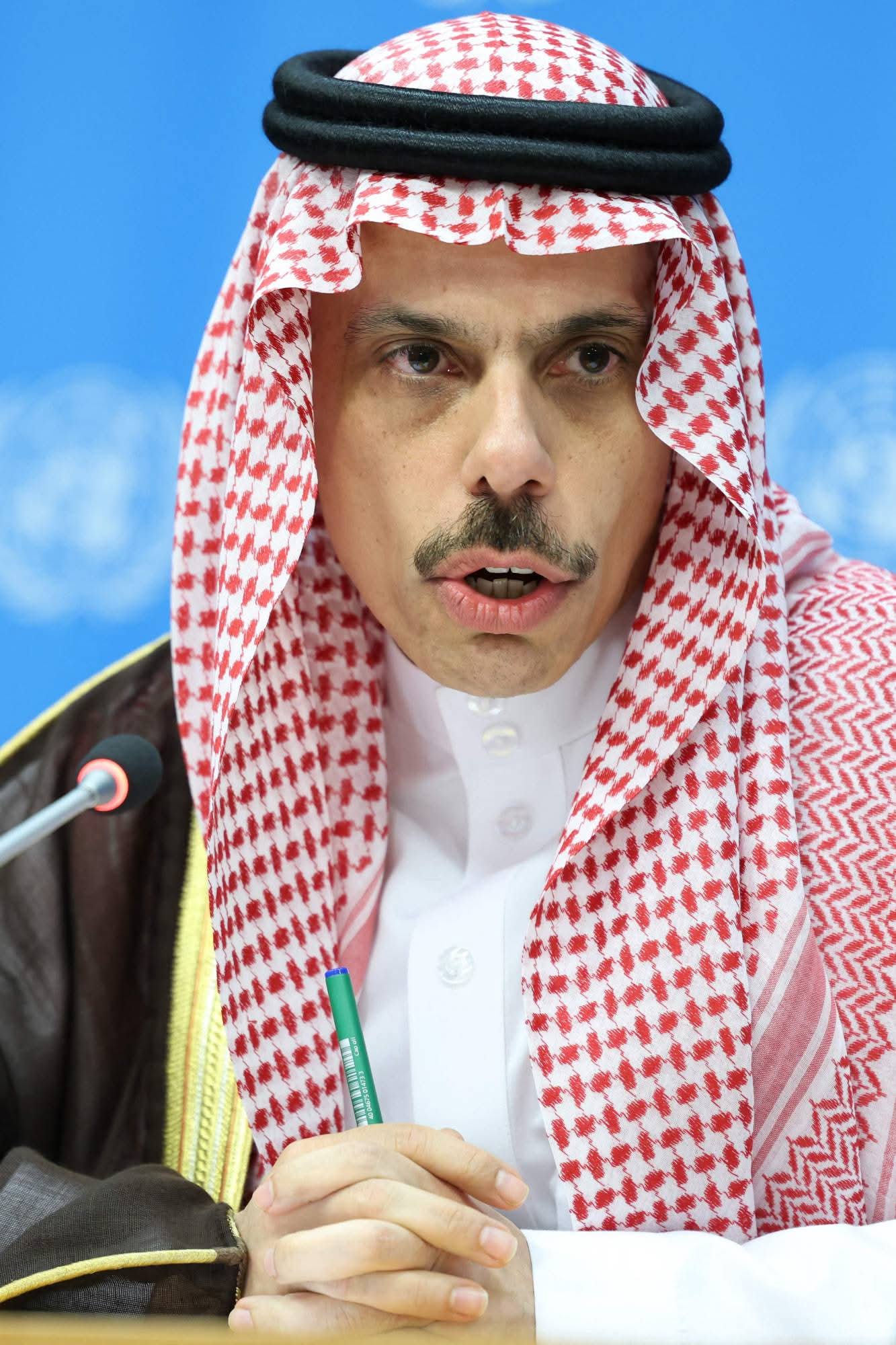 Conference co-chair Saudi Arabia's Foreign Minister Faisal bin Farhan Al-Saud speaks during a conference on a two-state solution for Israel and the Palestinians at UN headquarters on July 28, 2025 in New York City. The United States dismissed a French-Saudi-sponsored conference at the United Nations on promoting a two-state solution to the conflict between Palestinians and Israelis as a "stunt." The US State Department labeled the three-day event "unproductive and ill-timed," as well as a "publicity stunt"