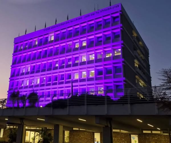 معهد «وايزمان» إحدى أبرز المؤسسات العلمية في إسرائيل مضاء باللون الأزرق (صفحة المعهد عبر «فيسبوك»)
