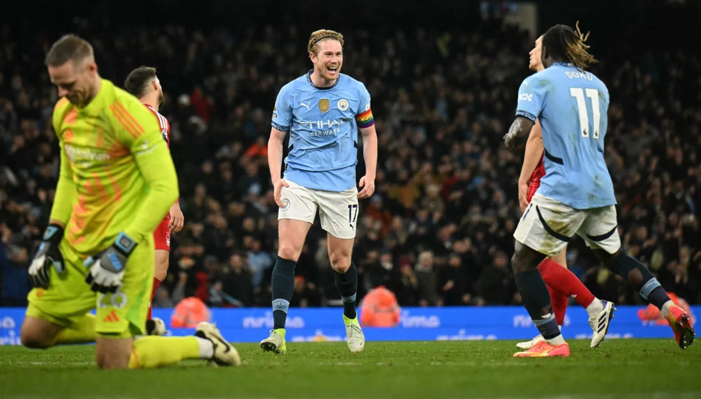 سجل كيفن دي بروين لاعب مانشستر سيتي هدفاً وصنع آخراً في أول مشاركة له كأساسي منذ أكثر من شهرين ليقود سيتي لفوز كبير 3-صفر على نوتنغهام فورست اليوم الأربعاء، ويعيد سيتي بذلك إلى طريق الانتصارات بعد أربع هزائم متتالية في الدوري الإنكليزي الممتاز لكرة القدم.