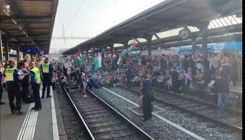 قطع مئات المتظاهرين المؤيّدين للقضية الفلسطينية في سويسرا أمس الإثنين، مسارات قطارات في محطتي جنيف ولوزان، ممّا تسبّب بتعطيل الحركة لبعض الوقت.
