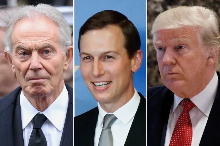 كومبو: دونالد ترامب وصهره جاريد كوشنر ورئيس الوزراء البريطاني السابق توني بلير