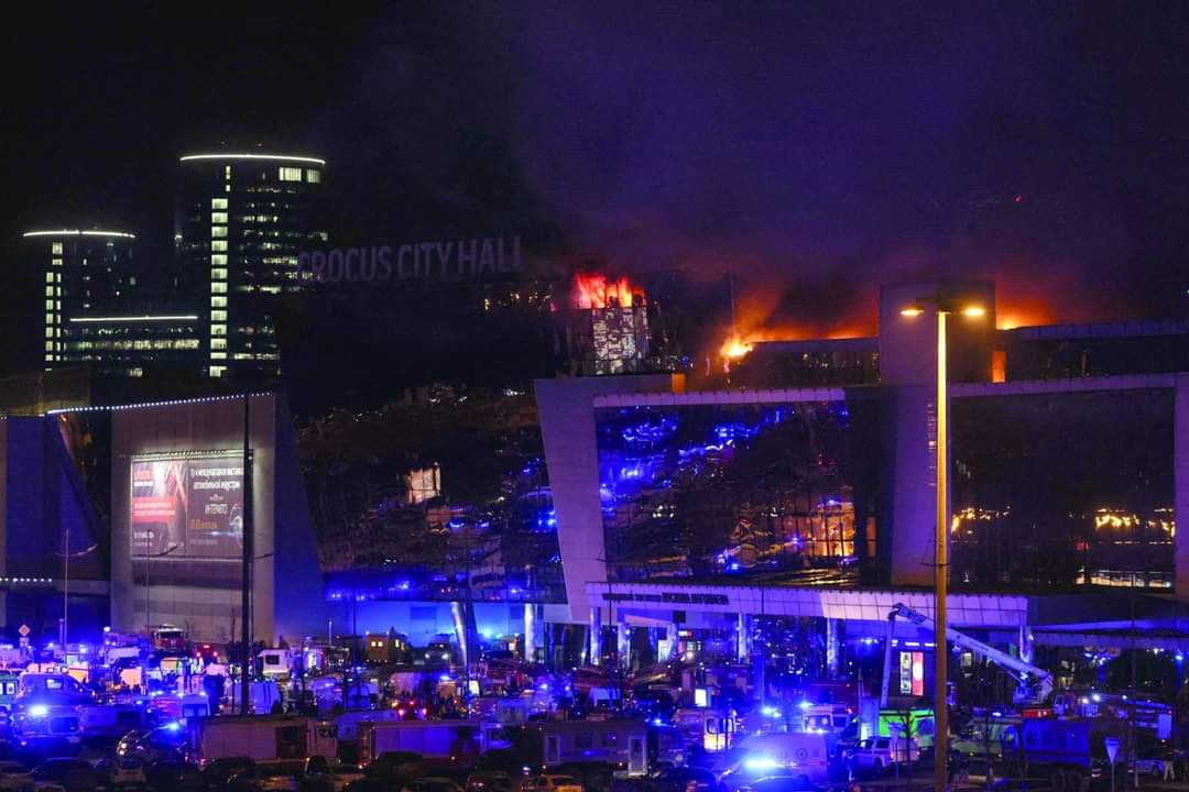 أفسد هجوم دموي وصفته موسكو بأنه إرهابي البهجة بفوز الرئيس فلاديمير بوتين بولاية رئاسة خامسة، إذ أفيد مساء اليوم الجمعة بمقتل ما لا يقل عن 40 شخصاً وجرح أكثر من 130 شخصاً آخرين في هجوم مسلح استهدف مركزاً ترفيهياً كانت تقام فيه حفلة موسيقية قرب موسكو.