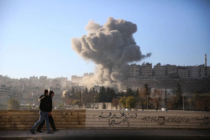 دخان يتصاعد وسط المعارك بين الجيش السوري والفصائل المسلحة في حلب (د.ب.أ)
