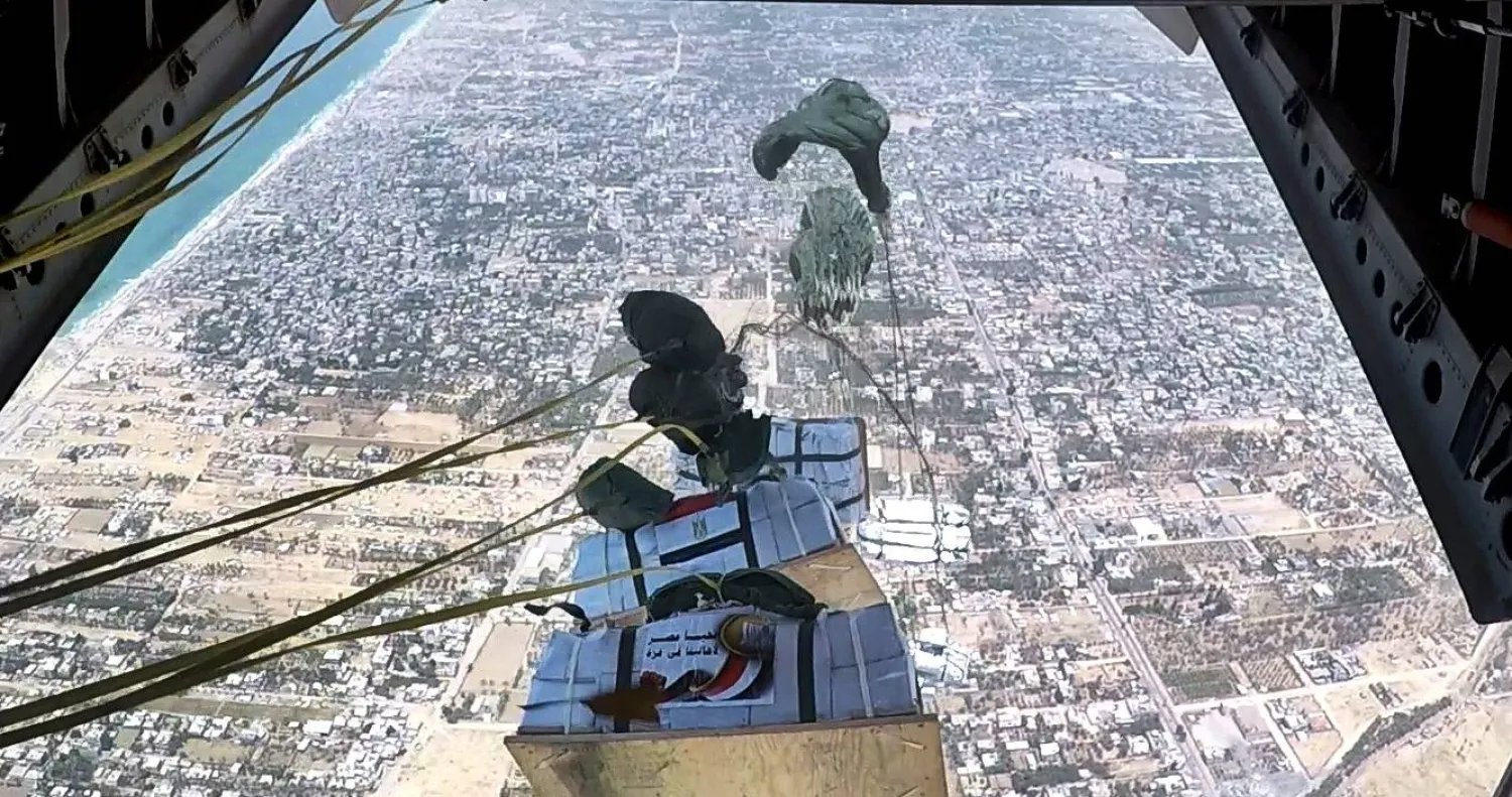 وأفاد المتحدث ﺑ«إقلاع 4 طائرات نقل عسكرية من جمهورية مصر العربية محملة بأطنان من المساعدات الغذائية لتنفيذ أعمال الإسقاط الجوي على المناطق التي يصعب الوصول إليها براً بقطاع غزة، وذلك لتخفيف حدة الأوضاع المعيشية الصعبة ونقص الاحتياجات الإنسانية التي يعانى منها سكان القطاع، هذا بالتزامن مع استمرار تقديم المساعدات براً».