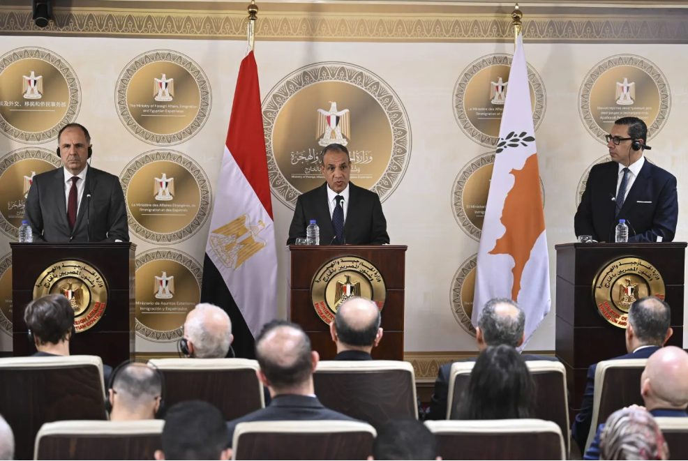 جاء ذلك خلال استقبال بدر عبد العاطي وزير الخارجية والهجرة المصري، كلاً من «جيورجوس جيرابيتريتيس» وزير خارجية اليونان، و«كونستانتينوس كومبوس» وزير خارجية قبرص، حيث عقد الوزراء الثلاثة مشاورات سياسية في القاهرة في إطار آلية التعاون الثلاثي، وفق المتحدث باسم «الخارجية» تميم خلاف.