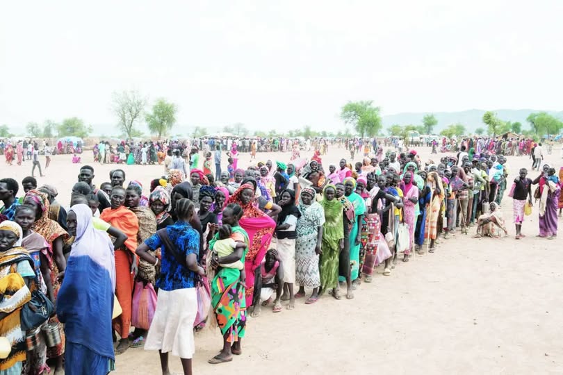 نازحون يصطفون للحصول على مساعدات غذائية في مخيم بشمال كردفان (أرشيفية – أ.ف.ب)