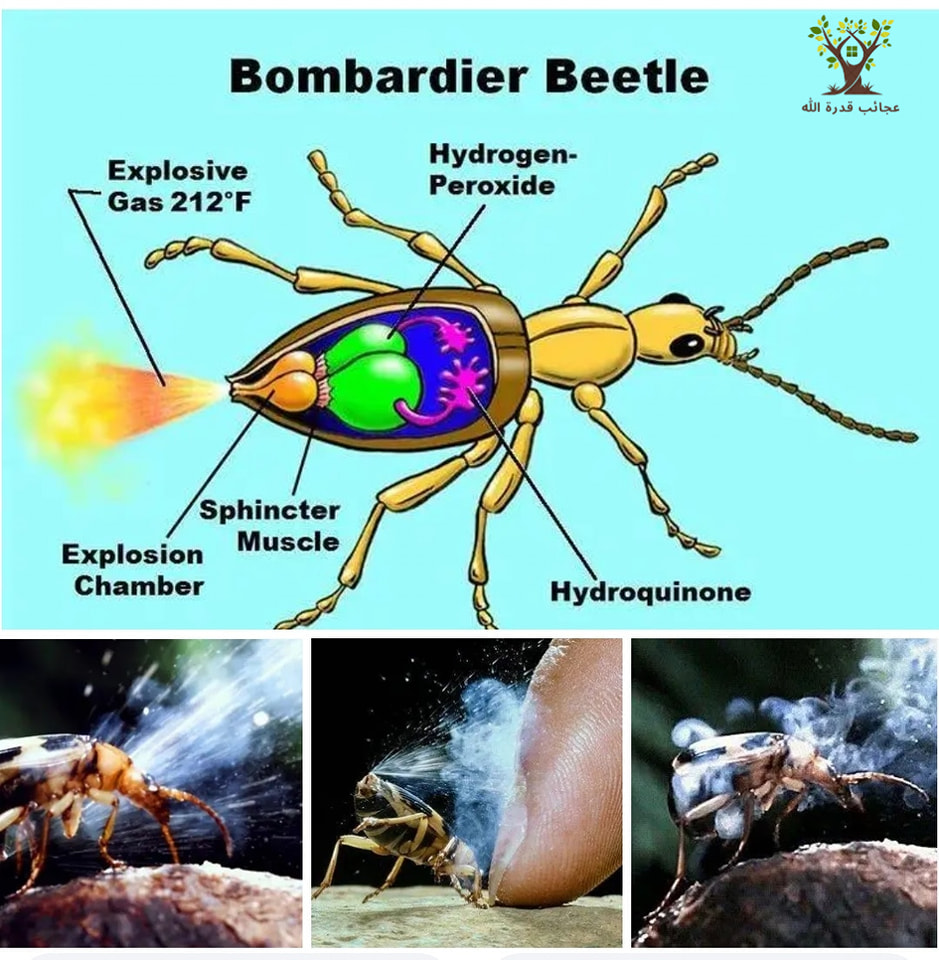 نعم إنها الخنفساء القاذفة (Brachinus crepitans)، التي خزّن الله في جسدها الصغير مادة بيروكسيد الهيدروجين وهيدروكينون في حجرات منفصلة بداخلها .