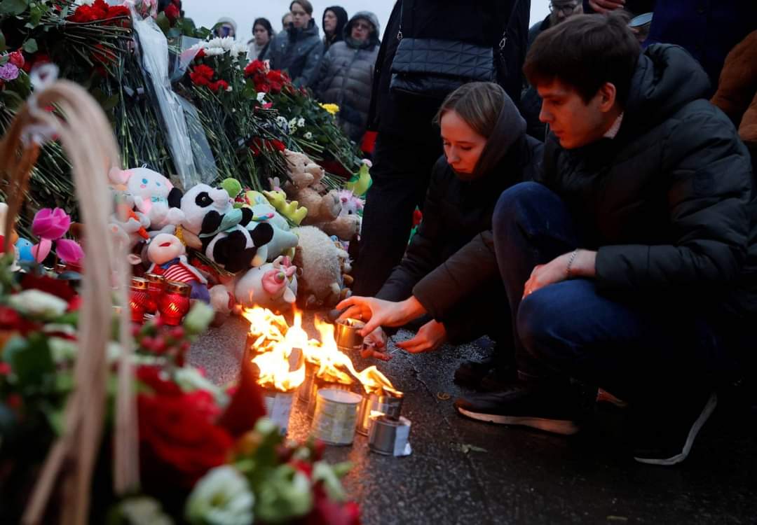 مواطنون روس يكرّمون ذكرى ضحايا الهجوم الإرهابي في موسكو السبت (رويترز)