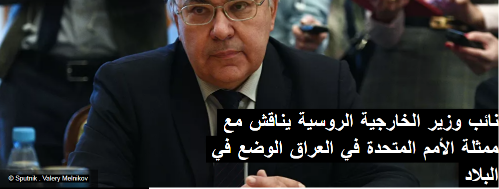 وتمت مناقشة الأوضاع السياسية الراهنة في العراق والمنطقة، مع التركيز على الاستعدادت الجارية لإقامة الانتخابات النيابية المبكرة في شهر تشرين الأول، ودور الأمم المتحدة في العملية الانتخابية في ضوء القرار الأخير لمجلس الأمن، بحسب ما ذكر الموقع الرسمي لوزارة الخارجية الروسية.https://platform.twitter.com/embed/Tweet.html?dnt=false&embedId=twitter-widget-0&features=eyJ0ZndfZXhwZXJpbWVudHNfY29va2llX2V4cGlyYXRpb24iOnsiYnVja2V0IjoxMjA5NjAwLCJ2ZXJzaW9uIjpudWxsfSwidGZ3X2hvcml6b25fdHdlZXRfZW1iZWRfOTU1NSI6eyJidWNrZXQiOiJodGUiLCJ2ZXJzaW9uIjpudWxsfSwidGZ3X3R3ZWV0X2VtYmVkX2NsaWNrYWJpbGl0eV8xMjEwMiI6eyJidWNrZXQiOiJjb250cm9sIiwidmVyc2lvbiI6bnVsbH19&frame=false&hideCard=false&hideThread=false&id=1399659387644485635&lang=ar&origin=https%3A%2F%2Farabic.sputniknews.com%2Farab_world%2F202106011049130336-%25D9%2586%25D8%25A7%25D8%25A6%25D8%25A8-%25D9%2588%25D8%25B2%25D9%258A%25D8%25B1-%25D8%25A7%25D9%2584%25D8%25AE%25D8%25A7%25D8%25B1%25D8%25AC%25D9%258A%25D8%25A9-%25D8%25A7%25D9%2584%25D8%25B1%25D9%2588%25D8%25B3%25D9%258A-%25D9%258A%25D9%2586%25D8%25A7%25D9%2582%25D8%25B4-%25D9%2585%25D8%25B9-%25D9%2585%25D9%2585%25D8%25AB%25D9%2584%25D8%25A9-%25D8%25A7%25D9%2584%25D8%25A3%25D9%2585%25D9%2585-%25D8%25A7%25D9%2584%25D9%2585%25D8%25AA%25D8%25AD%25D8%25AF%25D8%25A9-%25D9%2581%25D9%258A-%25D8%25A7%25D9%2584%25D8%25B9%25D8%25B1%25D8%25A7%25D9%2582-%25D8%25A7%25D9%2584%25D9%2588%25D8%25B6%25D8%25B9-%25D9%2581%25D9%258A-%25D8%25A7%25D9%2584%25D8%25A8%25D9%2584%25D8%25A7%25D8%25AF%2F&sessionId=22476eb03f893a4bd8dc9a95937690a6366bba44&siteScreenName=sputnik_ar&theme=light&widgetsVersion=82e1070%3A1619632193066&width=550px
